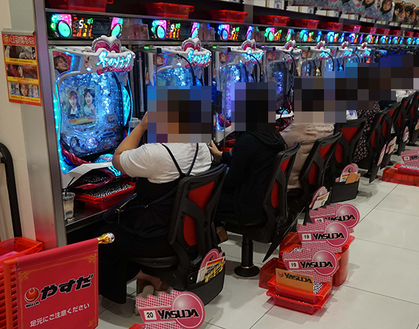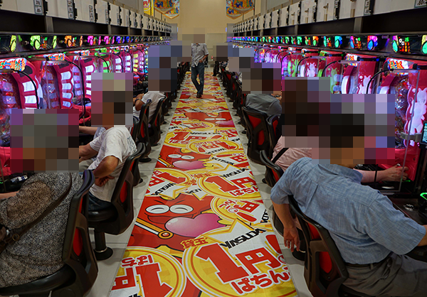 4円パチンコにおいて、人気となっていたのが「CRぱちんこウルトラセブン2」や「CRぱちんこ冬のソナタ Remember」。うれしそうな表情でハンドルをにぎっている姿もあり、シマ全体が大盛況となっていた。