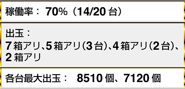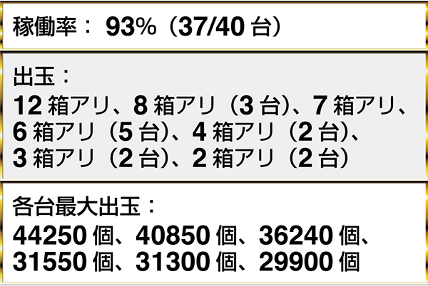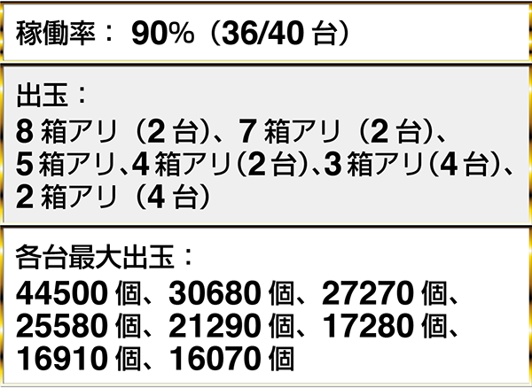 ・『ぱちんこCR真・北斗無双』は最大獲得出玉40000個超が2台