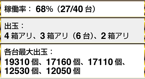 なかには、10箱以上の出玉を獲得しているプレイヤーも目撃している。