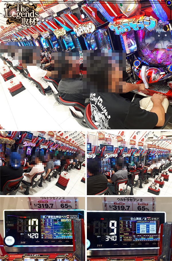『ぱちんこCR真・北斗無双』と『CRぱちんこウルトラセブン2』の稼働率が高く、9割以上の席が埋まっていた。