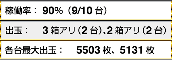 『バジリスク~甲賀忍法帖~絆』と『パチスロ モンスターハンター 月下雷鳴』では、あわせて6台以上で最大獲得枚数が5000枚を超えるデータを確認した。