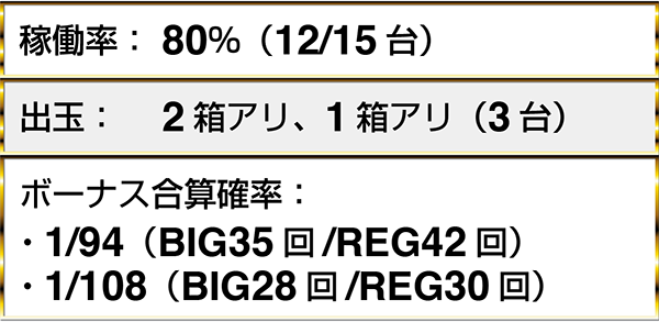 『ゴーゴージャグラー』においては、ボーナス合算確率1/100以下のデータも目にしている。