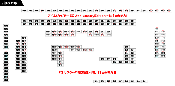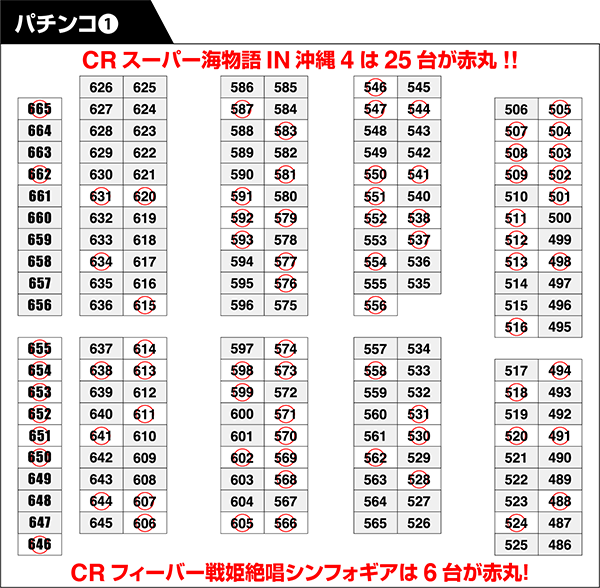 11台設置された「ぱちんこCR北斗の拳7 百裂乱舞」では赤丸が4個!