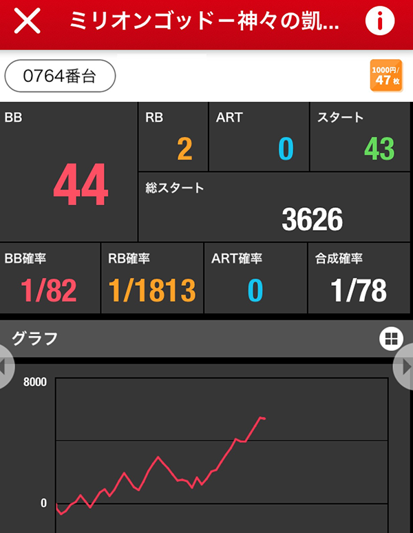 「ミリオンゴッド-神々の凱旋-」の赤丸率は、なんと80%超え!