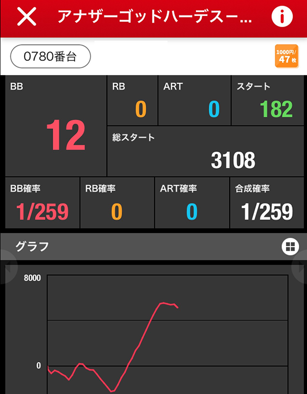 「アナザーゴッドハーデス」でもたくさんの赤丸台に出会えた。