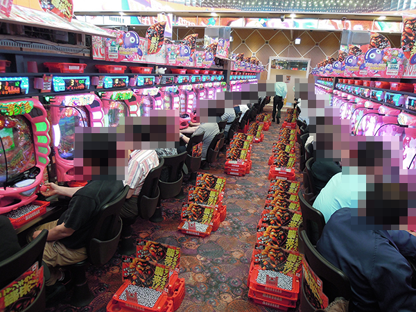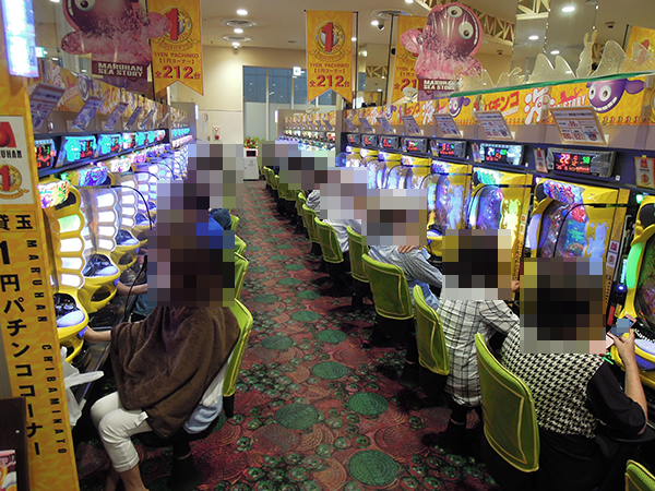 1円パチンコの稼働率も高く、貸し玉料金を問わずにホール全体が活気づいていた「マルハン千葉みなと店」。
