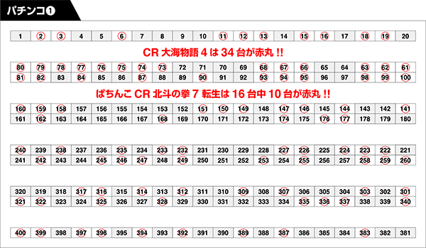 「ぱちんこCR北斗の拳7 転生」は16台中10台に印をチェック!