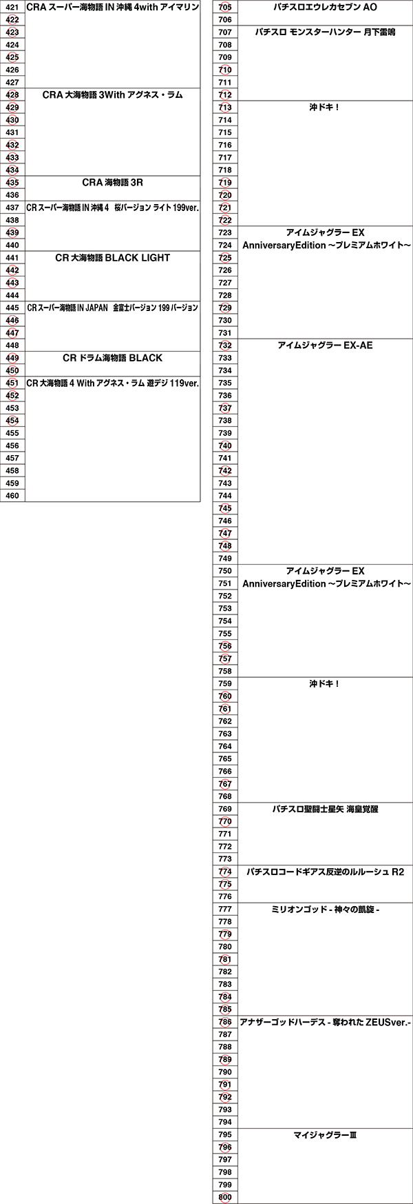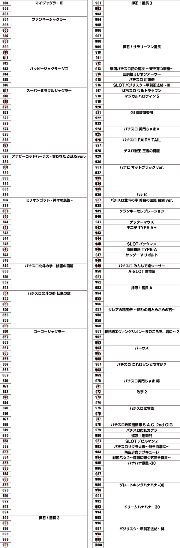 「バジリスク~甲賀忍法帖~絆」では8台にチェックマーク!