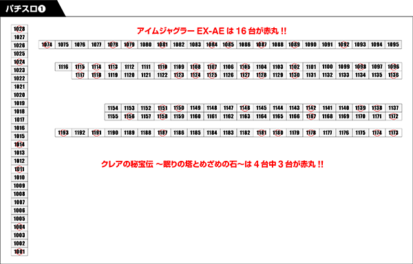 魅力的な赤丸台がたくさんあるなかでも、とびっきりに目立っていた台を紹介!! 注目ポイントを盛りだくさんでお届けしよう。