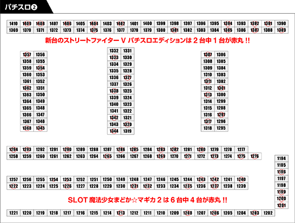 活気に包まれたホール内は、赤丸をつけるべき台があちこちに存在している状況であった。