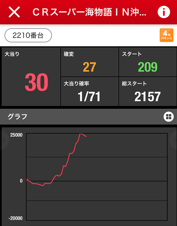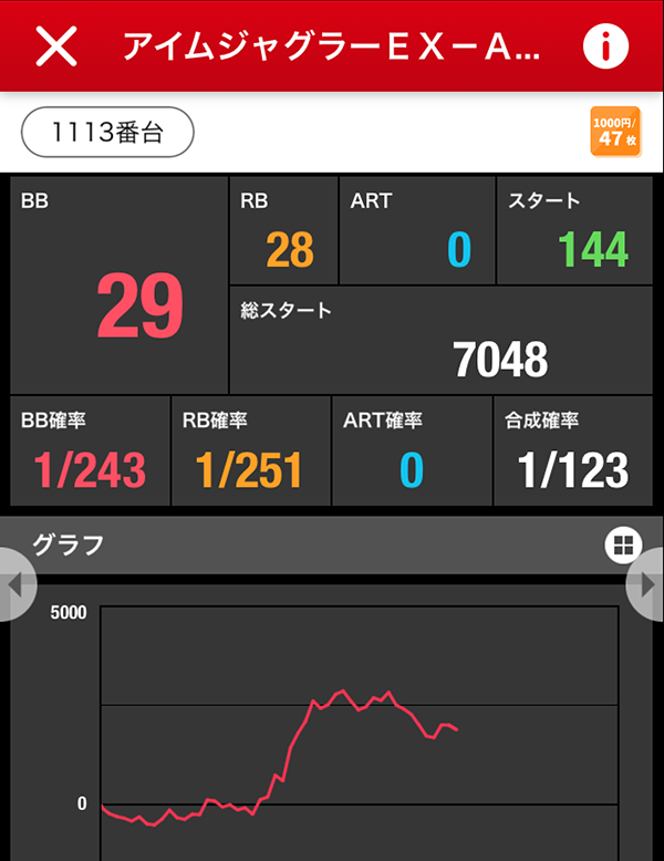 「アイムジャグラーEX-AE」や「マイジャグラーⅢ」などがにぎわっており、次々と赤丸を描いていった。