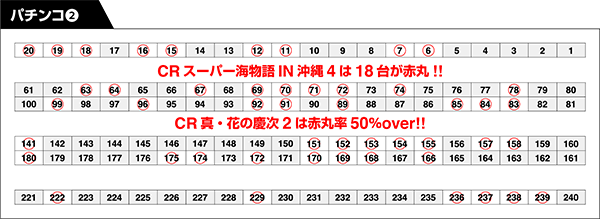 「ぱちんこCR真・北斗無双」では4台、「ぱちんこCR北斗の拳7 転生」では5台を赤丸に認定!