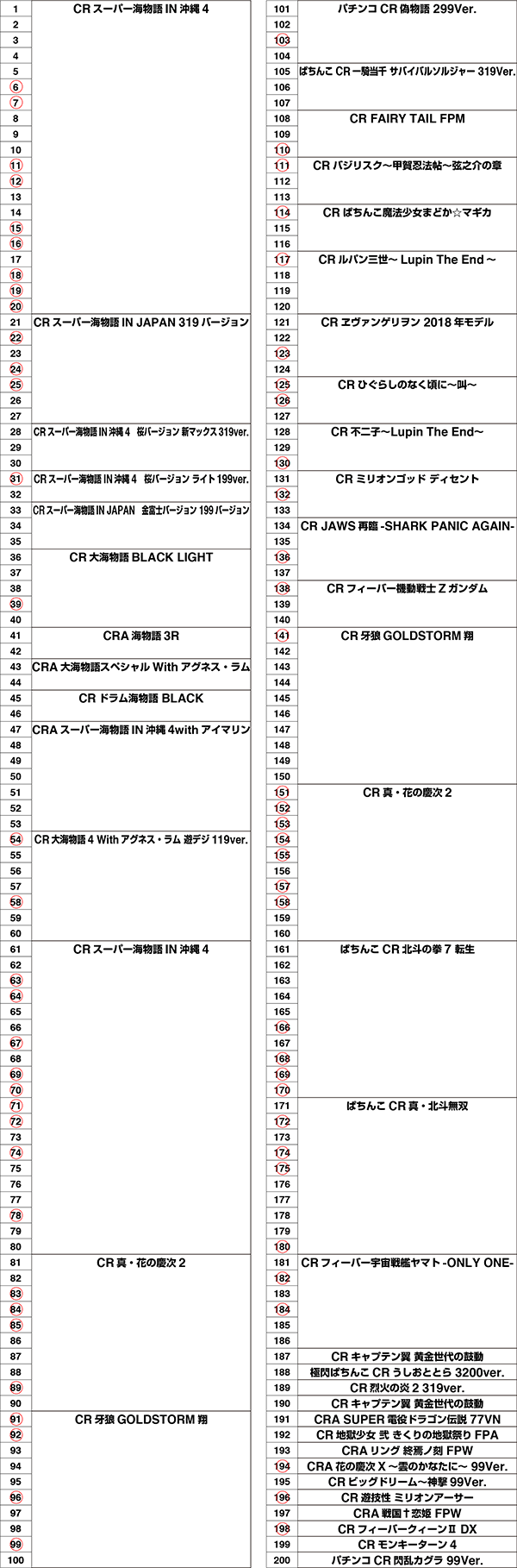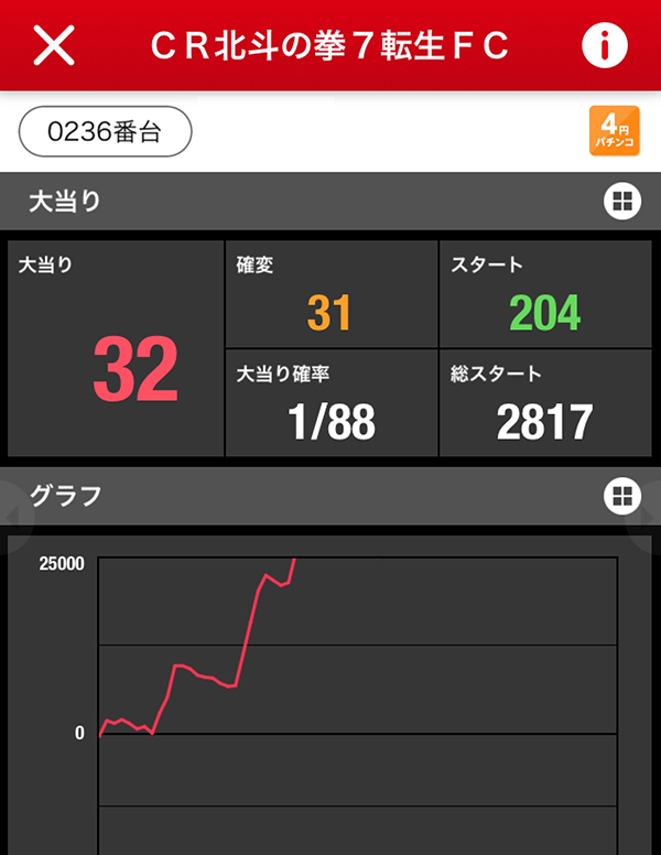 「ぱちんこCR北斗の拳7 百裂乱舞」も4台中3台と赤丸率はかなり高い!