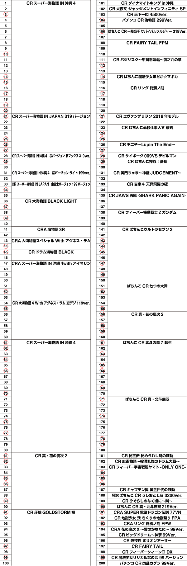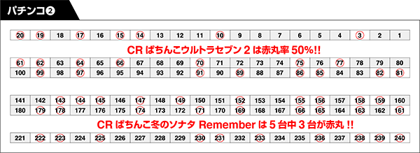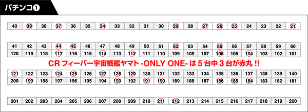 パチンコとパチスロの各シマがたくさんの赤丸に彩られた。