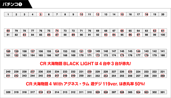 10台設置された「CR不二子〜Lupin The End〜」では5台が赤丸! ポテンシャルを発揮しているといったプレイヤーも目立っていた。