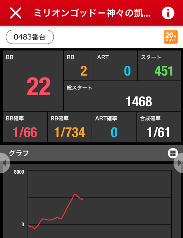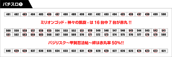パチスロで最初に赤丸をつけたのは、「ミリオンゴッド-神々の凱旋-」。赤丸率は40%以上を記録した。