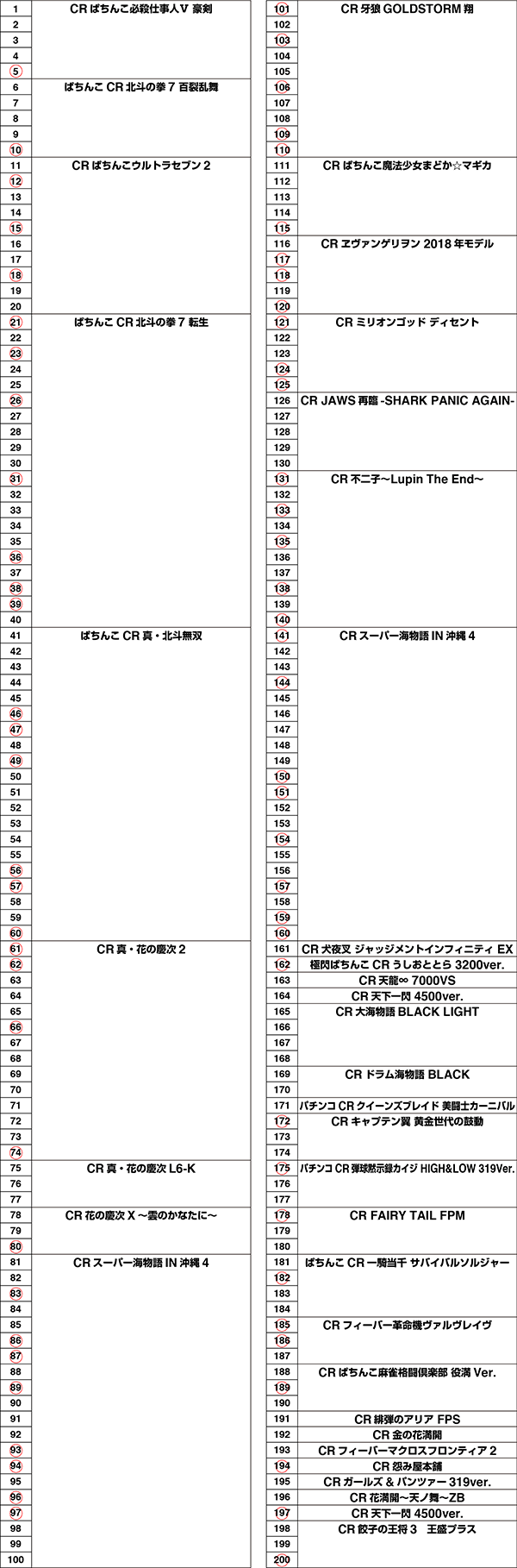 「ぱちんこCR真・北斗無双」と「ぱちんこCR北斗の拳7 転生」に、赤丸をつけるべき台がたくさんあった。