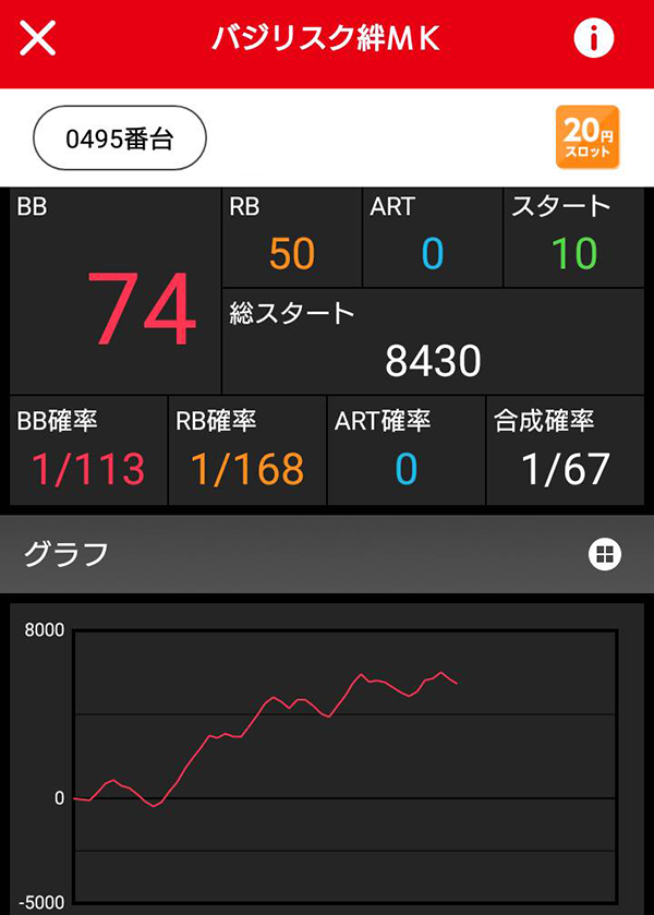 パチスロでは、「バジリスク~甲賀忍法帖~絆」に赤丸をマーク!