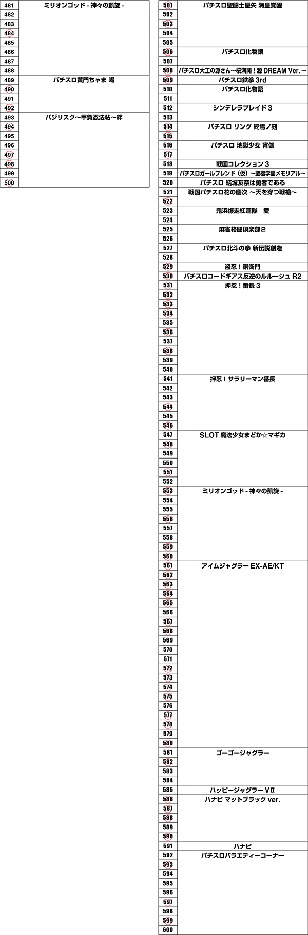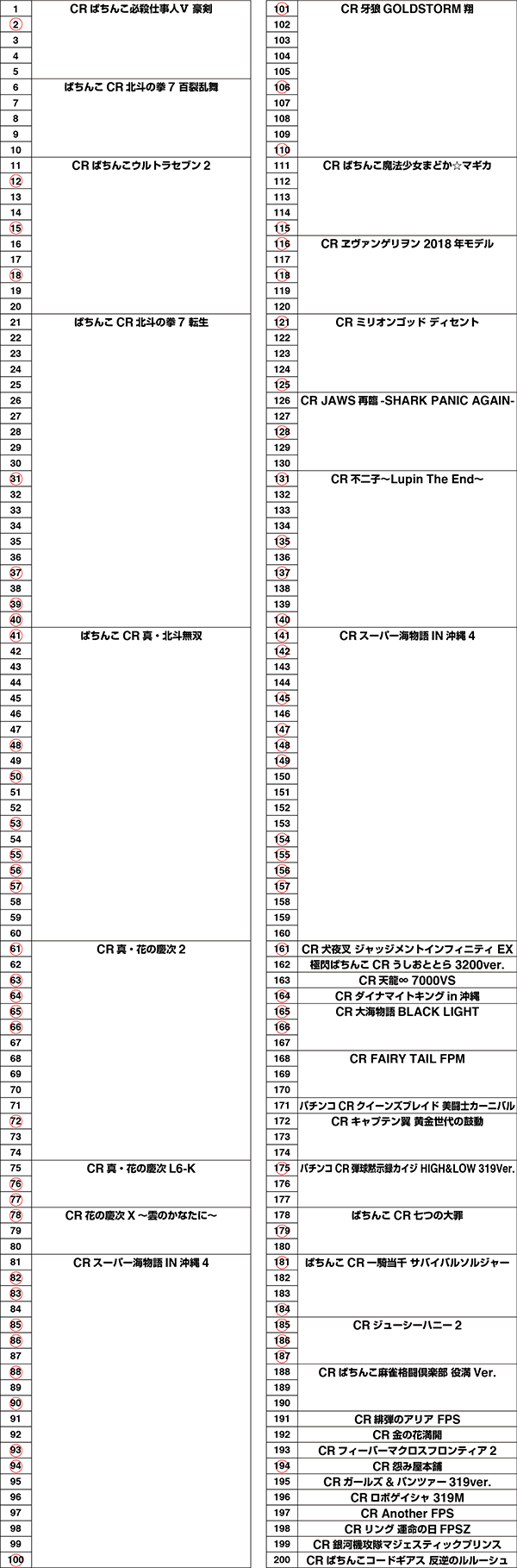 「マルハン千葉ニュータウン店」のさまざまな台に赤丸をつけた今回の「AKAMARU REPORT」。