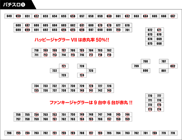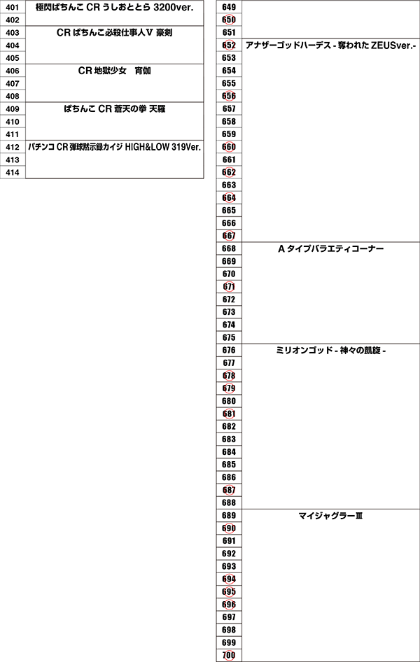 パチスロコーナーにおいては、「バジリスク~甲賀忍法帖~絆」に多数の赤丸をマーク!