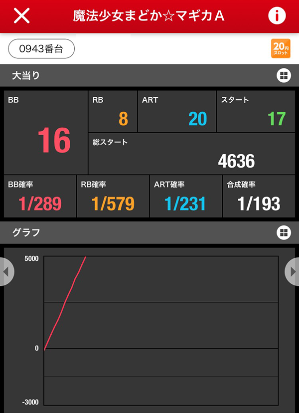 「SLOT魔法少女まどか☆マギカ」の赤丸率は50%。