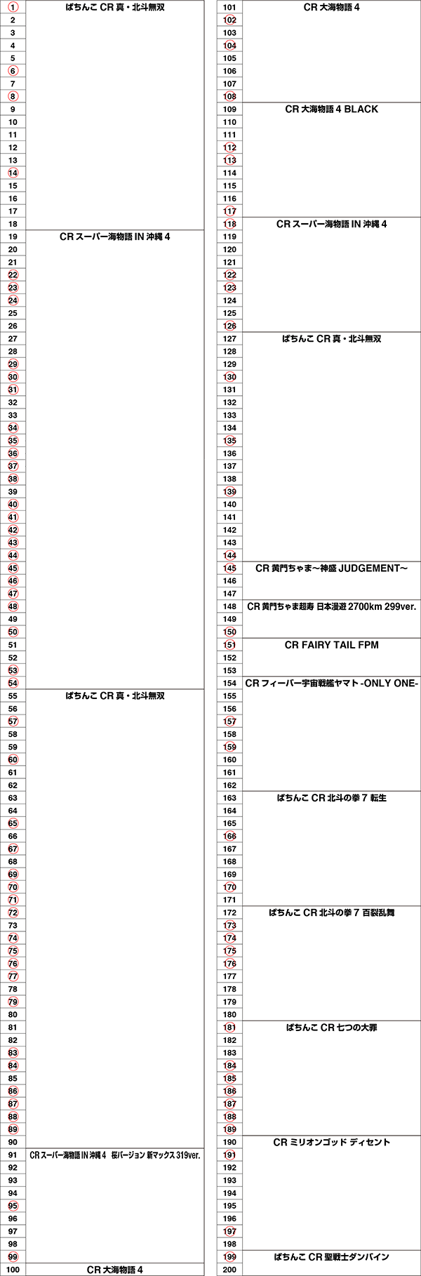 「ぱちんこCR真・北斗無双」につけた赤丸は、なんと20個以上!