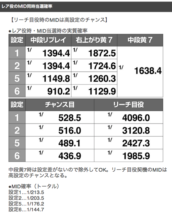 リーチ目役契機のMIDなど、設定差が大きい同時当選パターンも把握しておきたい。