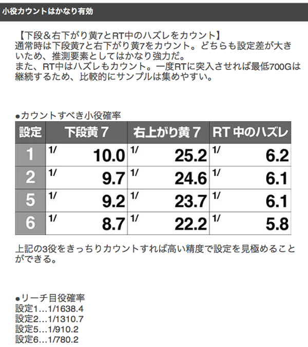 通常時の黄7やRT中のハズレなどもカウントして、設定推測に活かそう。
