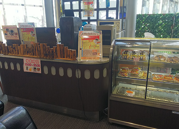 レストスペースには、カフェが完備されている。ドリンクメニューをはじめ、パンやワッフルといった軽食が用意されていることにも好感を抱いた。