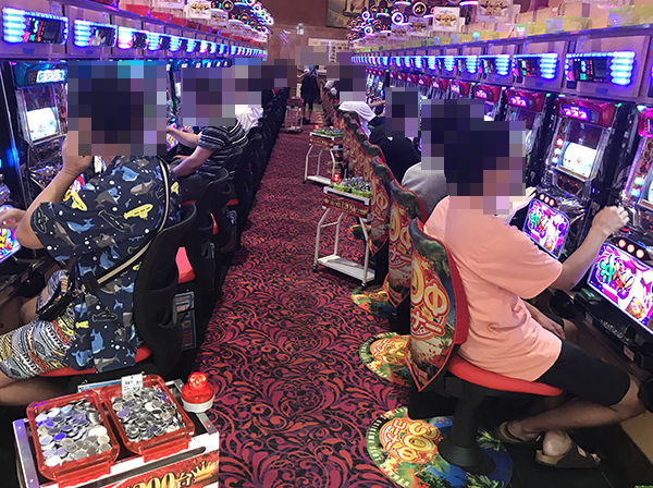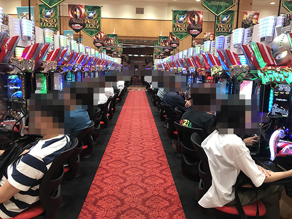 15時頃の4円パチンコでは、「CRぱちんこウルトラセブン2」や新台の「ぱちんこCR七つの大罪」などが人気。プレイヤーが機種の性能を引き出している様子もうかがえた。