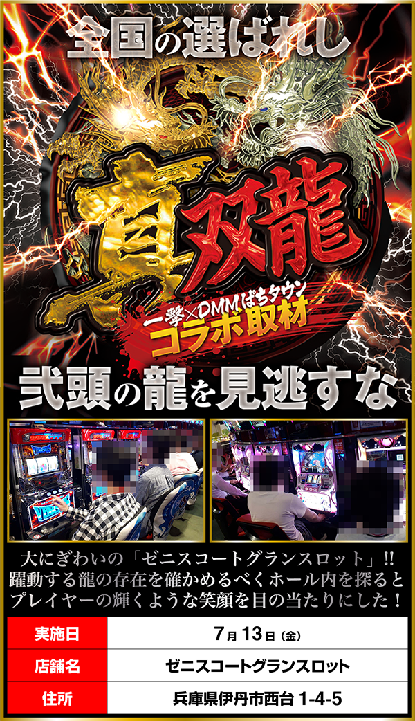 「真双龍」の舞台となったのは、阪急電鉄・伊丹駅のすぐそばに位置するパチスロ専門店の「ゼニスコートグランスロット」。