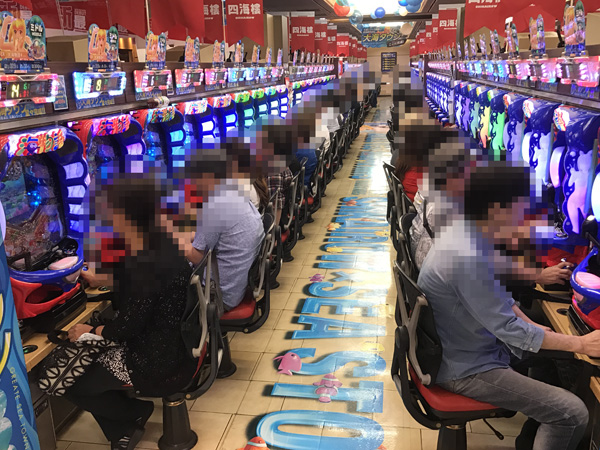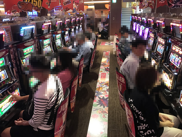 開店直後、パチンコ・パチスロともにフル稼働状態となるコーナーも続出。これから始まる展開に期待をふくらませて遊技しているといった雰囲気がこちらにまで伝わってきた。