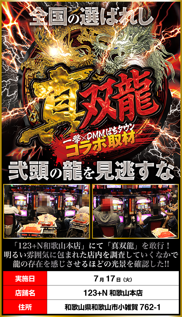 「真双龍」を通して、つぎの機会にはプレイヤーとして遊技を楽しみたいと思えるほどの魅力を体感した「123+N和歌山本店」での1日であった。