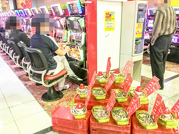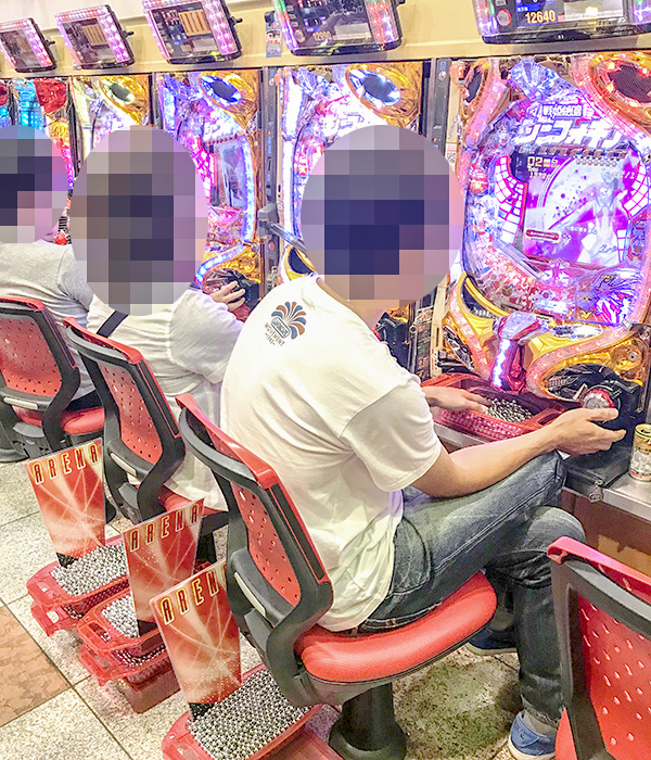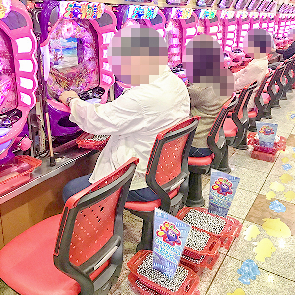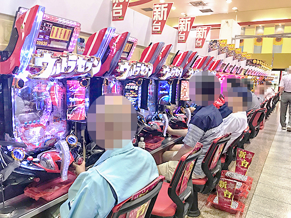 15時半ごろの4円パチンコをチェックすると、「CRぱちんこウルトラセブン2」や「CRフィーバー戦姫絶唱シンフォギア」が活況の様子。プレイヤーたちの笑顔を見ると、充実した時間を過ごしていたことが分かる。