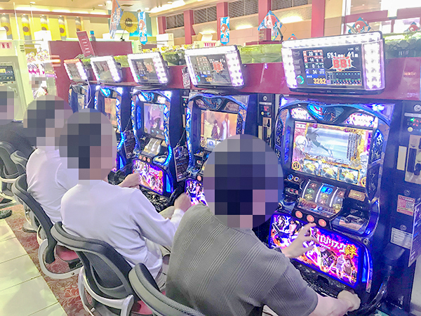取材時の店内には多くのプレイヤーが来店しており、パチンコ・パチスロ共に、様々な機種が支持されていた。