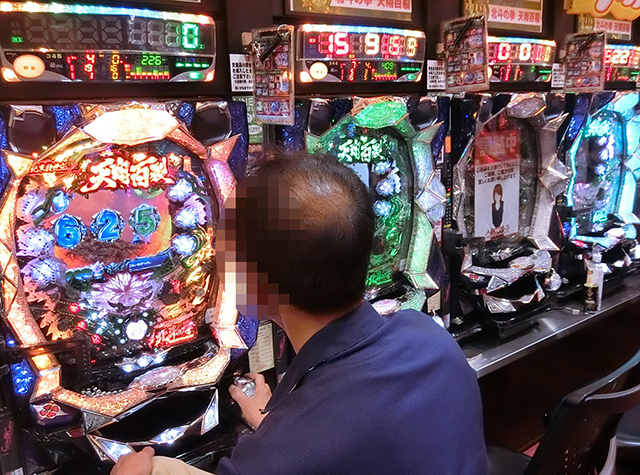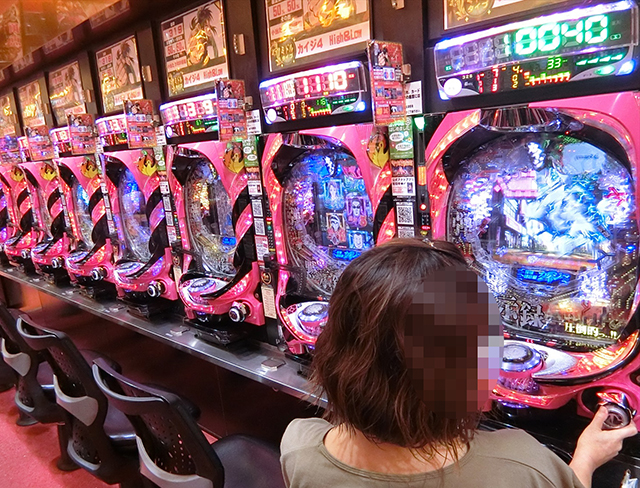 不思議なことに8台の『パチンコCR弾球黙示録カイジ HIGH&LOW 319Ver.』は、稼働しているのがたった1人という寂しい状況。