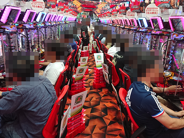 15時頃の4円パチンコでは、「CRぱちんこウルトラセブン2」や「ぱちんこCR真・北斗無双」、海物語シリーズが盛況。高稼働となっているだけでなく、華麗なパフォーマンスを披露するプレイヤーも目立っていた。