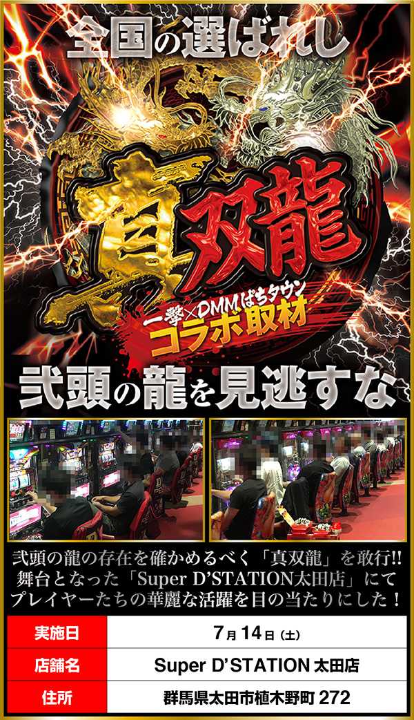 丁寧な接客で遊技をサポートするスキルの高いスタッフが揃っている「Super D’STATION太田店」にて、「真双龍」を敢行。