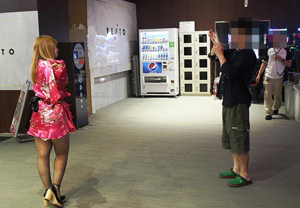 実戦の前に、ホール内の状況をチェックするアンジュちゃん。