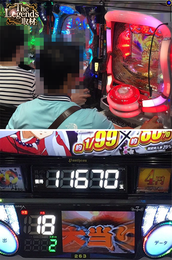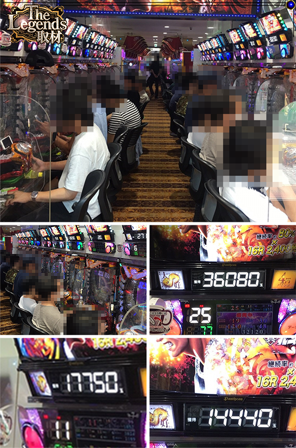 朝イチから大勢のプレイヤーでにぎわい、さまざまな機種が満席となったホール内を舞台に伝説の光景を追った。