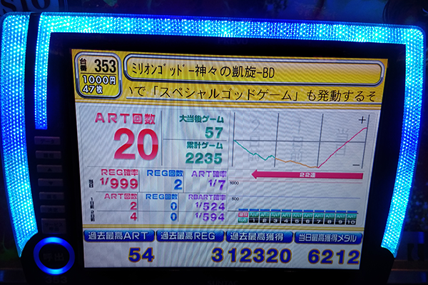 今回のアッパーは、353番台の【ミリオンゴッド-神々の凱旋-】に出現した…