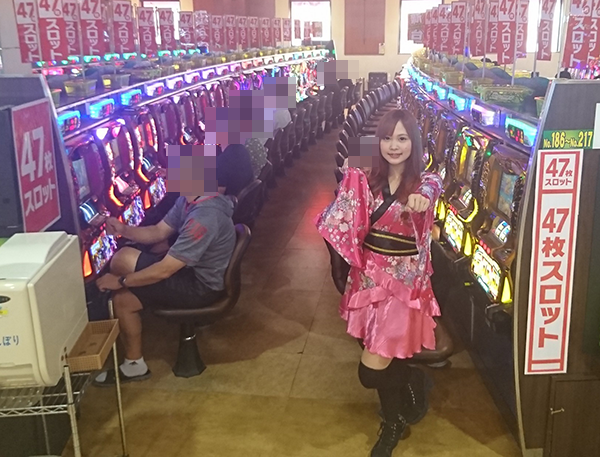 「バジリスク~甲賀忍法帖~絆」や「ミリオンゴッド-神々の凱旋-」にも、活躍をしている方を発見。イキイキとした表情からは、遊技を満喫していることもうかがえました~。