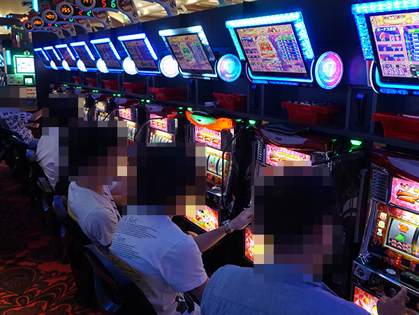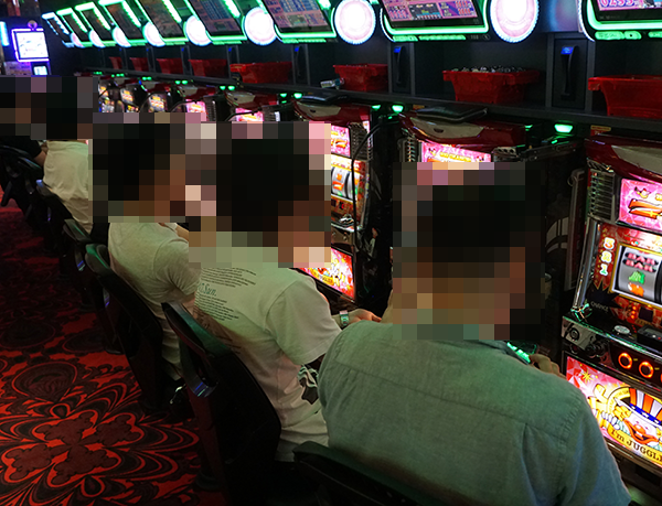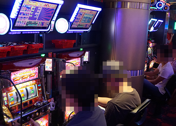 にぎわいに包まれたホール内を進んでいくと、満席となっている「ニューアイムジャグラーEXーKT」に目がとまった。