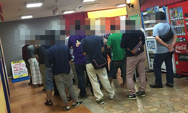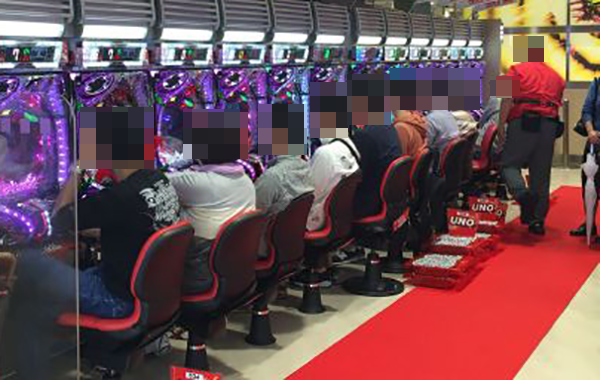 朝の入場はパチンコ・パチスロで別々の並び順となっており、合わせて70人ほどのプレイヤーが集まっていた。