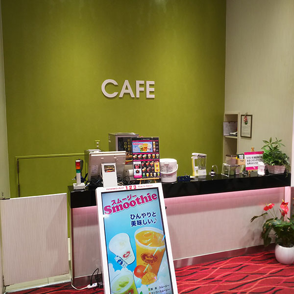広々としたレストスペースにはカフェが併設されており、美味しいドリンクを飲みつつ、有意義なひと時を過ごすことができる。
