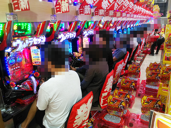 4円パチンコのなかで、とくに人気を集めていたのが「ぱちんこCR真・北斗無双」と新台の「CRぱちんこウルトラセブン2」。遊技をおこなうプレイヤーの表情はイキイキとしており、充実感も得られていたようだ。