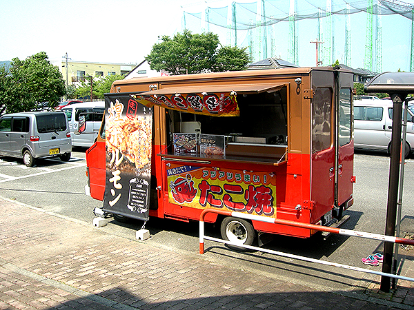 取材当日は店舗の入り口にたこ焼きを販売するキッチンカーが出店。多くのプレイヤーが利用していた。