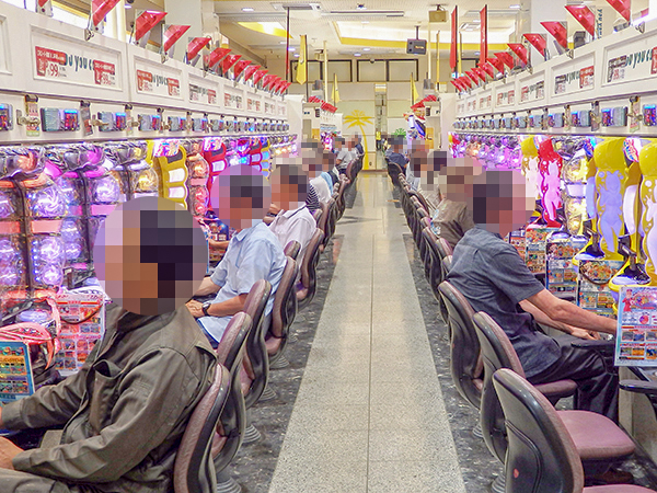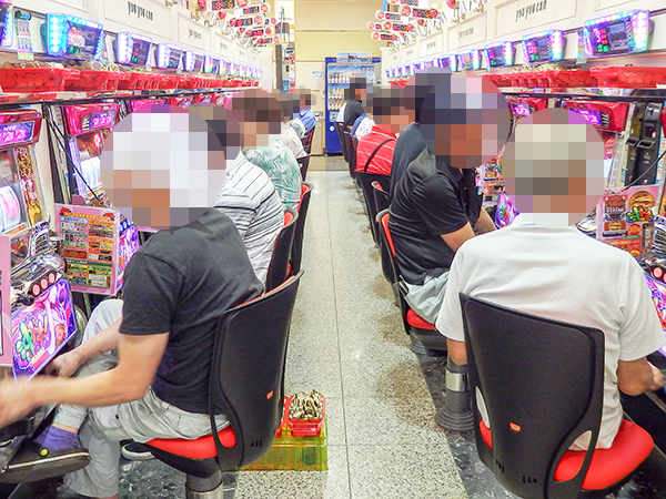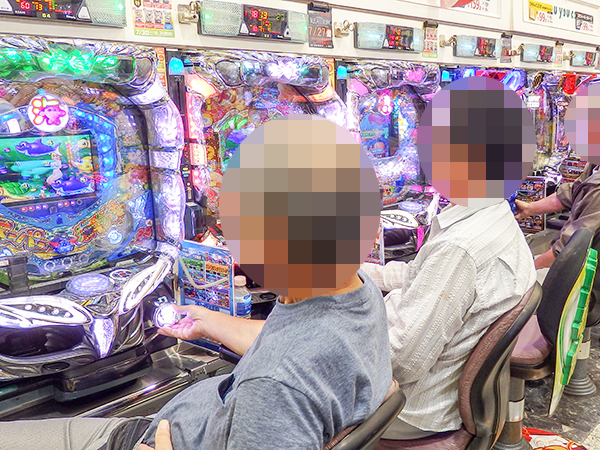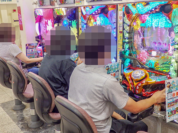 14時ごろの1円パチンコを見ると、海物語シリーズや「パチンコCR偽物語 199Ver.」などの盛り上がりが大きく、あちこちで微笑ましいシーンを確認している。