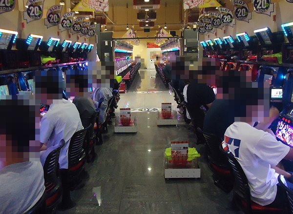 ホール全体が輝くような笑顔で彩られていた「ニューラッキー要町店」。機種やスペックを問わずに、さまざまな場所がにぎわっていた。