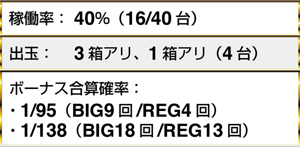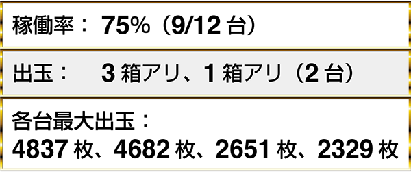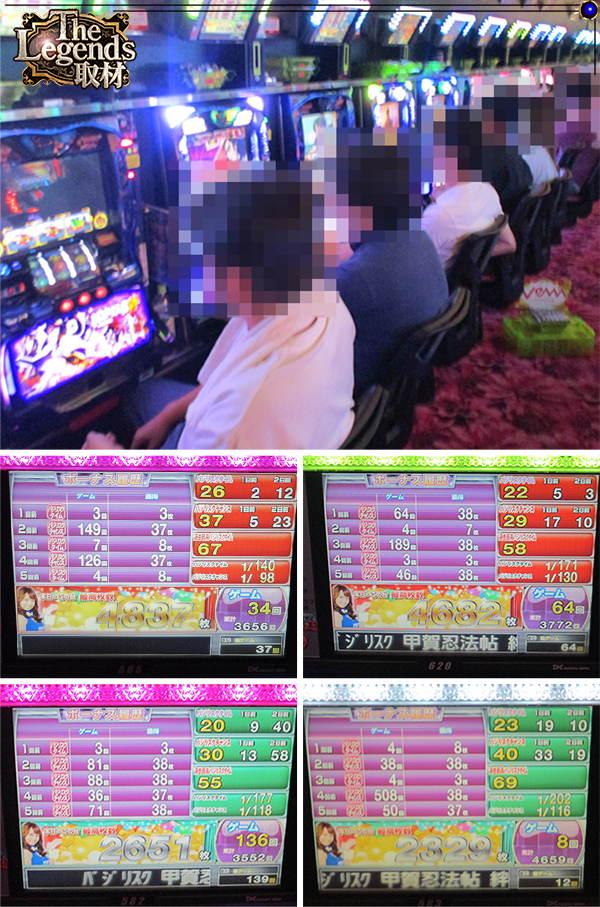 ・『バジリスク~甲賀忍法帖~絆』の2台で最大獲得枚数4000枚超を確認